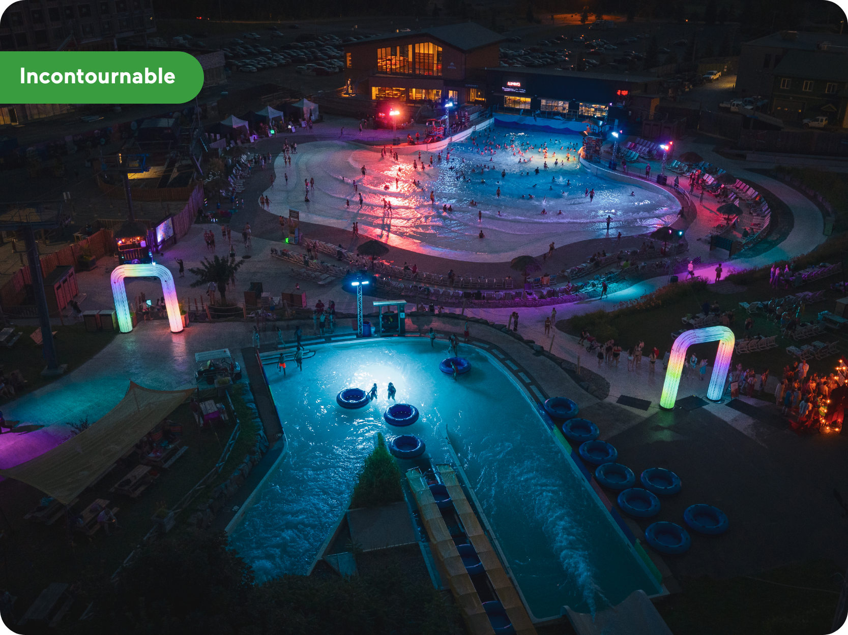L’été dernier, Lumin’o a vu le jour au Parc aquatique de la montagne, proposant une expérience immersive en soirée permettant de découvrir ou redécouvrir les glissades d’eau au coucher du soleil… puis à la noirceur. Du 10 juillet au 7 août, l’événement invite les familles et leurs proches à vivre le site autrement, dans un décor lumineux complètement réinventé.