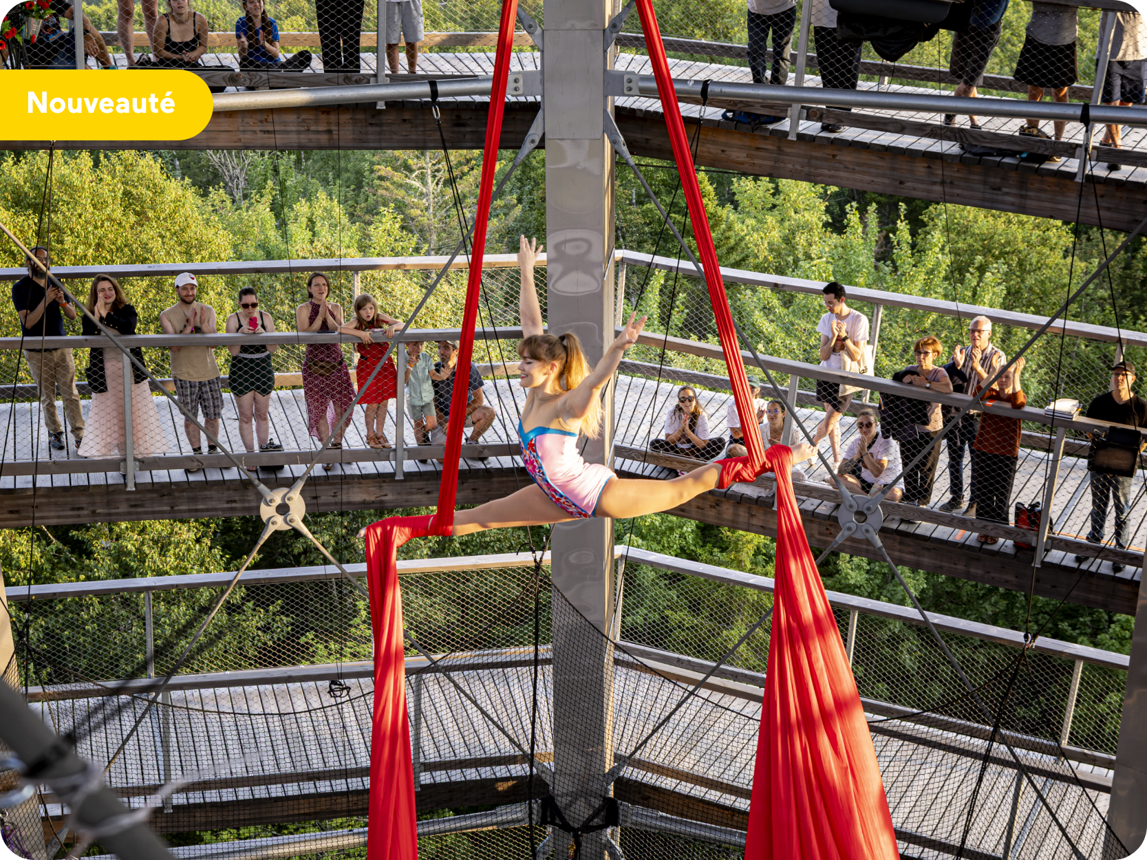 Le Sentier des Cimes dévoile une programmation estivale alliant sensations, culture et connexion à la nature. Du 3 juillet au 23 août, le spectacle de cirque Là-Haut fait son grand retour sur la tour panoramique. Incluses dans le billet d'entrée, les performances aériennes de Vague de Cirque marient prouesses acrobatiques et immersion en forêt.