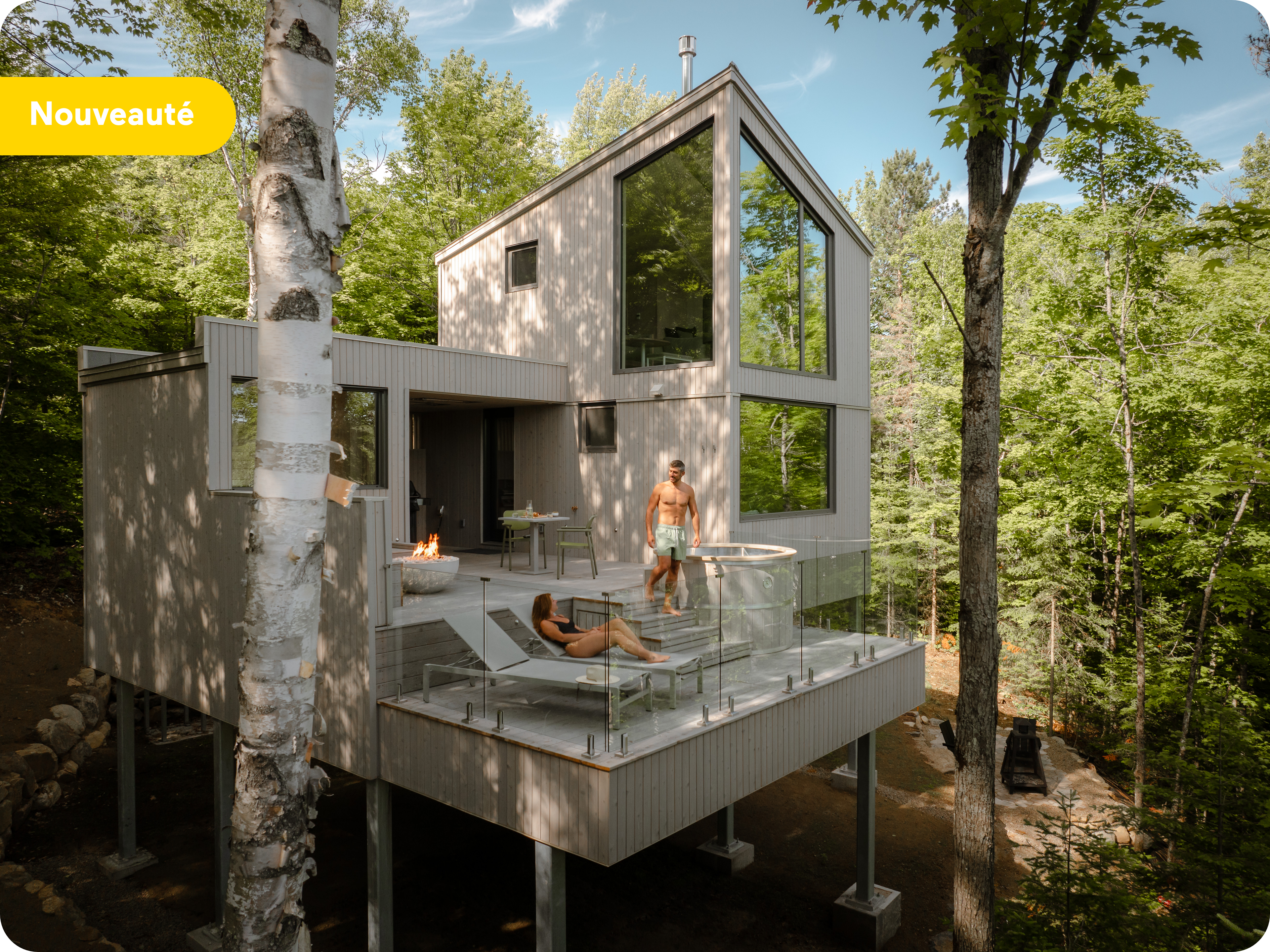 À la station thermale La Cime, les chalets Cime 03 et Cime 04 s’inscrivent dans la continuité de Cime 02, une unité haut de gamme reconnue pour son intégration harmonieuse à l’environnement. Perchés à flanc de montagne au cœur de la forêt lanaudoise, ils proposent un cadre intime et distinctif.