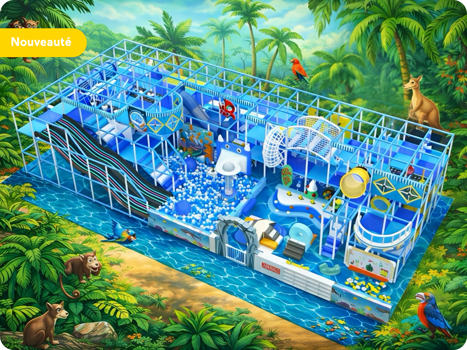 Avec ses jeux de lumière, ses sons d’oiseaux et ses bruits de vagues, RadicaBOUM propose une ambiance tropicale immersive et festive. Le rez-de-chaussée et le deuxième étage peuvent notamment accueillir des fêtes d’anniversaire.