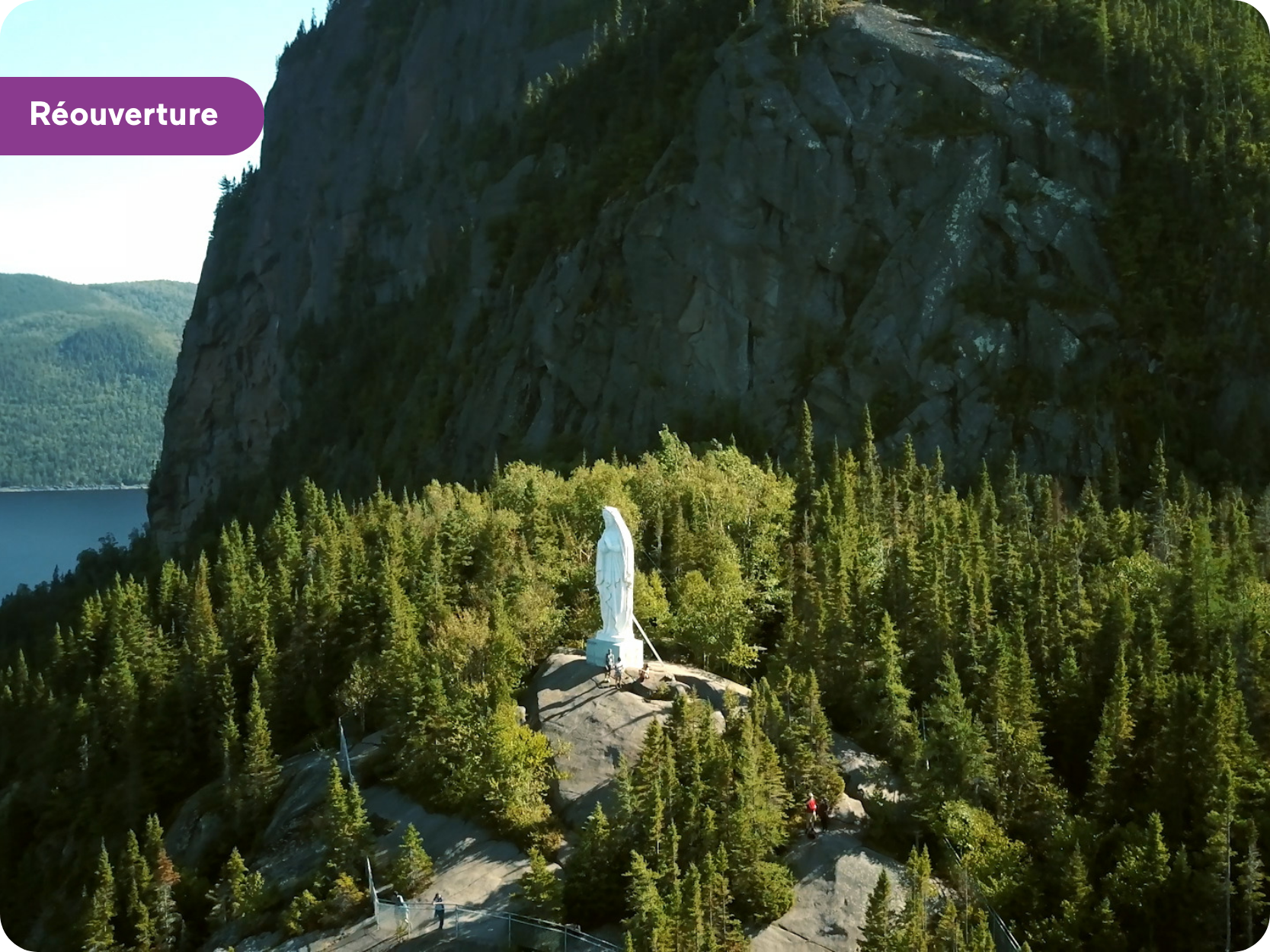 Le sentier menant à la célèbre statue de Notre-Dame du Saguenay est de nouveau accessible dans son intégralité, à la suite d’importants travaux de stabilisation du monument. Réalisé dans des conditions complexes et en milieu isolé, ce projet d’envergure a permis de sécuriser ce site patrimonial emblématique perché au sommet de la montagne, à Rivière-Éternité.