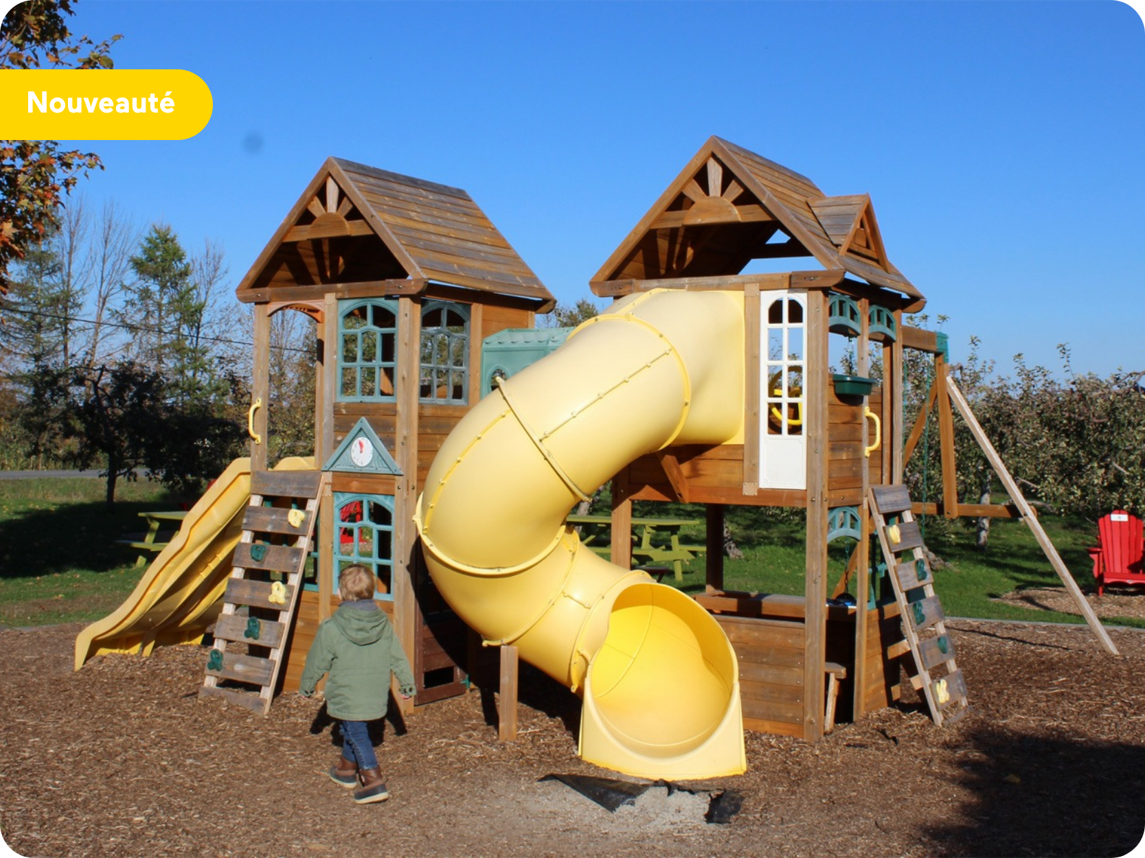 Le Verger Champêtre enrichit son offre familiale avec l’ouverture d’un nouveau parc interactif aménagé directement à l’intérieur d’un enclos de chèvres miniatures. Les enfants peuvent ainsi s’amuser en contact avec les animaux, dans un espace sécurisé intégrant un module de jeux avec glissade, balançoire et structures pour grimper.