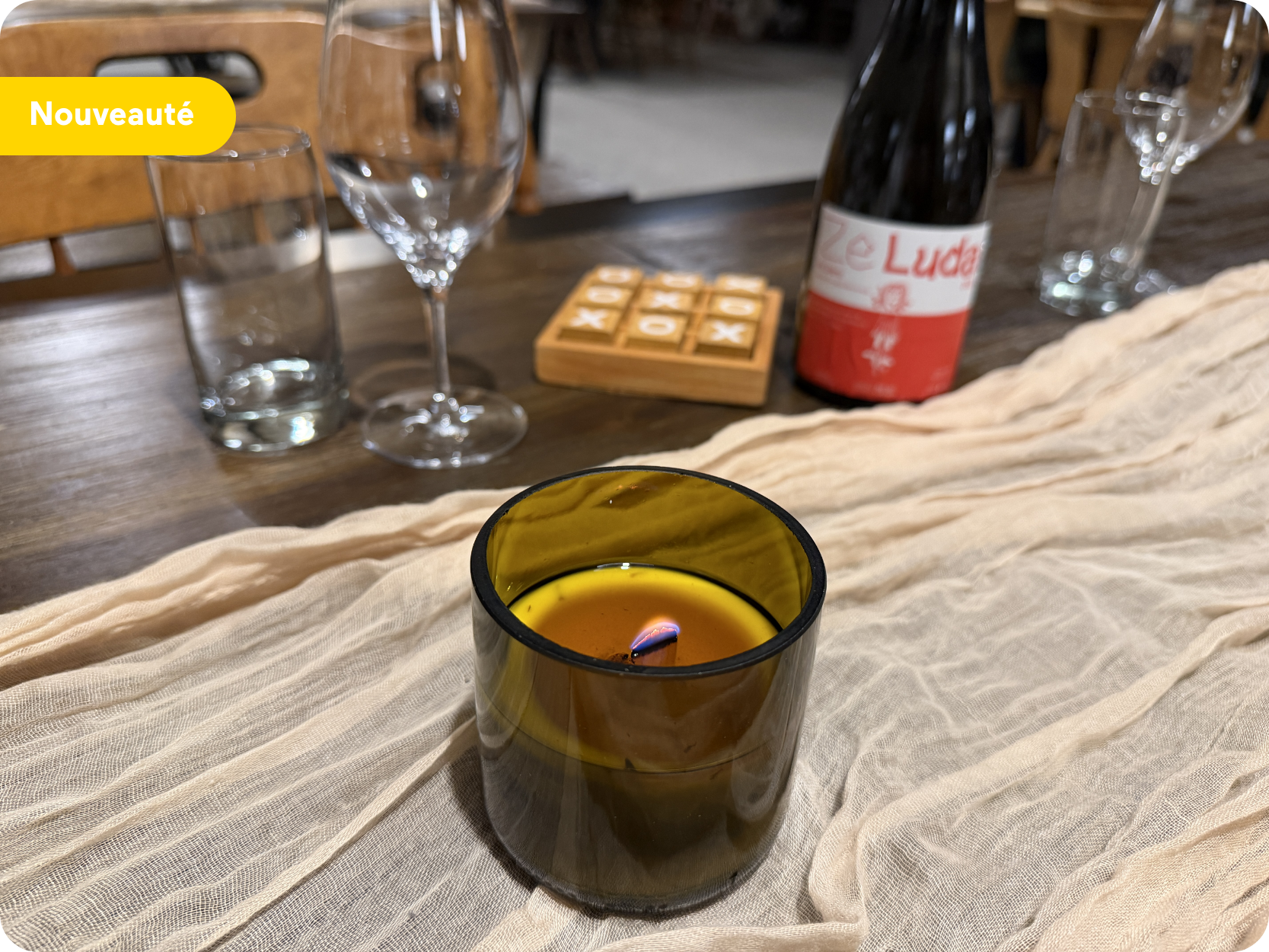 Toujours engagé dans une démarche d’économie circulaire, le Vignoble et Domaine Beauchemin propose désormais des ateliers de fabrication de chandelles zéro déchet offerts sur réservation les week-ends, tout au long de l’année. L’activité met en valeur les bouteilles de vin recyclées sur place, découpées et transformées en contenants, puis remplies de cire provenant des ruches du domaine.