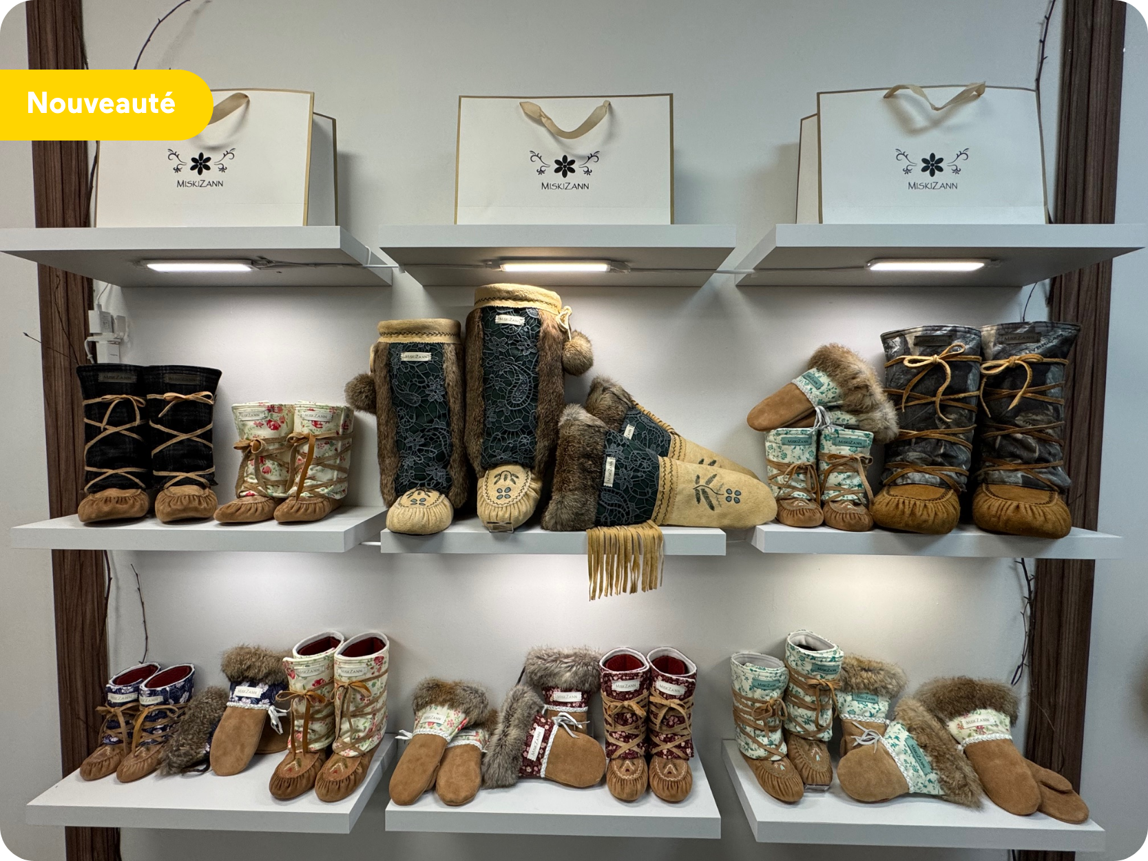 La boutique MiskiZann ouvre ses portes au cœur de Trois-Rivières, offrant une vitrine urbaine pour découvrir l’artisanat autochtone. Spécialisée dans les mocassins et accessoires Atikamekw, elle propose des pièces cousues à la main, ornées de motifs traditionnels porteurs d’histoire.